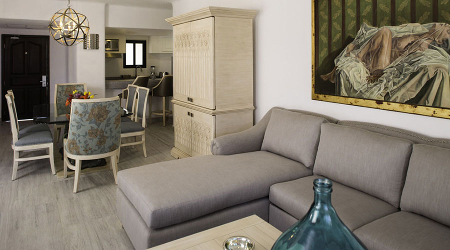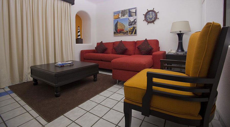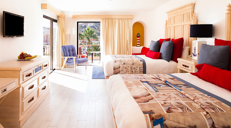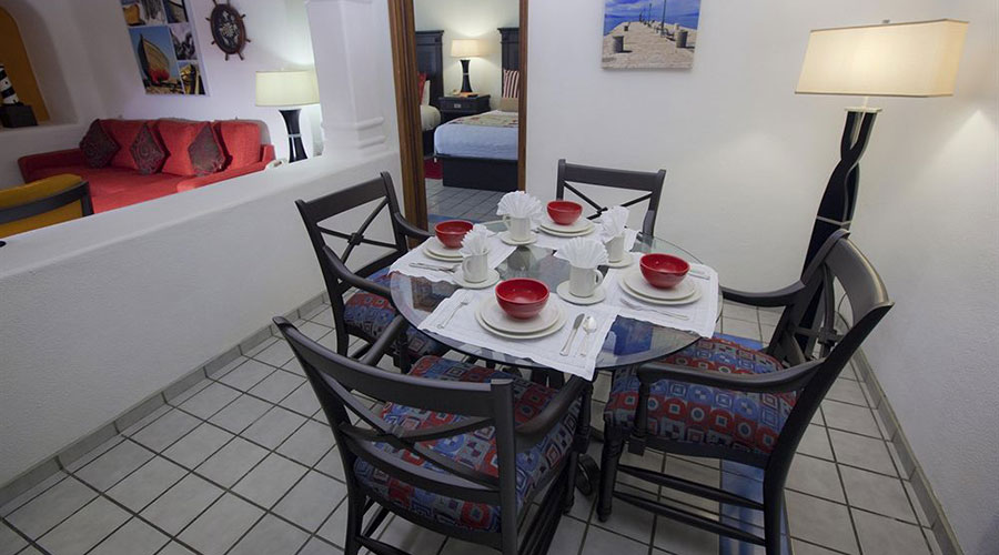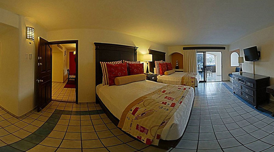 This Spacious Suite Has A Bedroom With 2 Queen-Size Beds And An En Suite Bathroom. There Is A Double Sofa Bed In The Living Room, A second Bathroom, Dining Area, Balcony And Well-Equipped Kitchen. Two separate baths for privacy. The units have a balcony overlooking the marina or swimming pool. A new fitness center is located on the top floor with beautiful views of the marina and Sea of Cortez. The units can sleep 6 with privacy for 4.