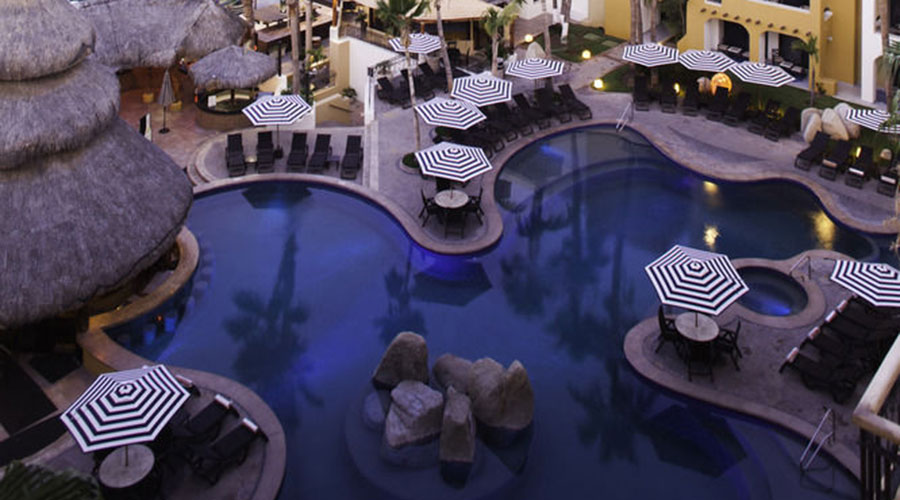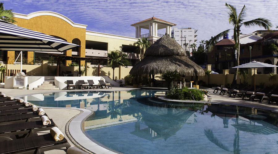 Marina Fiesta Resort and Spa has 2 pools and multiple jacuzzis. Plenty of places to lay out and just relax. One thing that makes this property unique is it's location. Approximately 95% of Cabo san Lucas is non swimmable due to strong undertows & beautiful yet sharp coral reef, some of which makes Cabo san Lucas a Scuba diving paradise. However our guest enjoy beautiful transparent blue-green waters which is Medano beach The most Popular and 100% Swimmable beach in Cabo san Lucas. The beach is just a short walk from the resort.