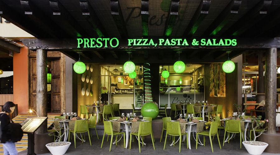 Presto Located in the Golden Zone, this modern bistro/restaurant offers Italian dishes such as soups, salads, antipastos, pastas, gourmet pizzas, focaccia and ciabatta sandwiches for lunch or dinner.